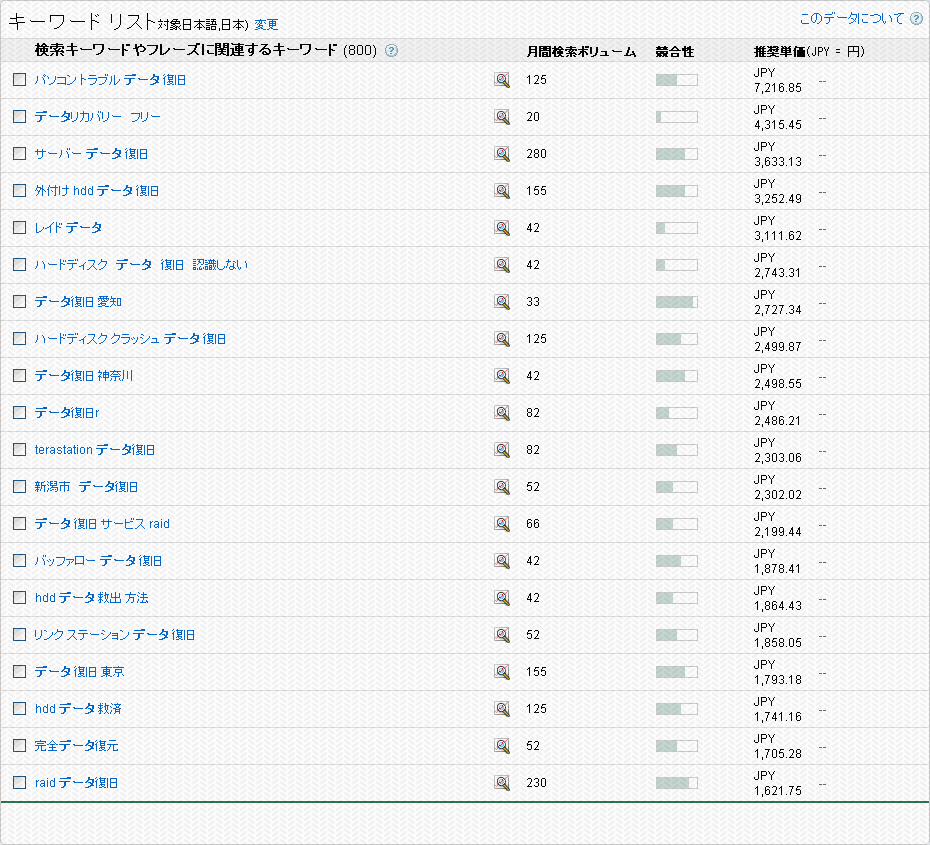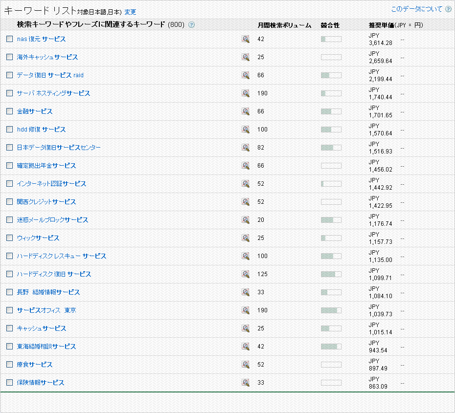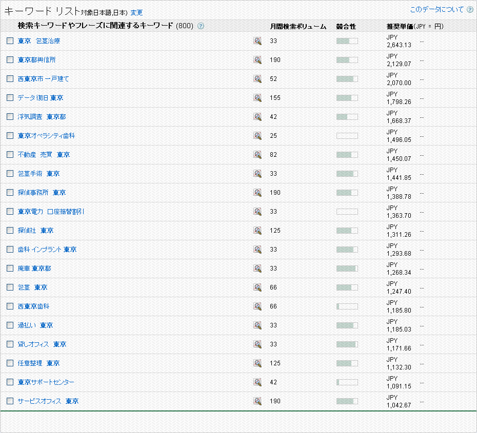 こちらも前述の「サーバ」キーワードと同じく、供給過多気味の中での激しい競争が、高単価の一因なのではないでしょうか。