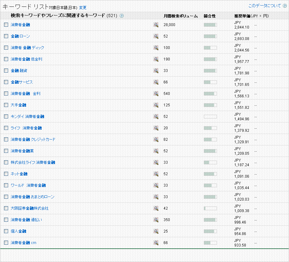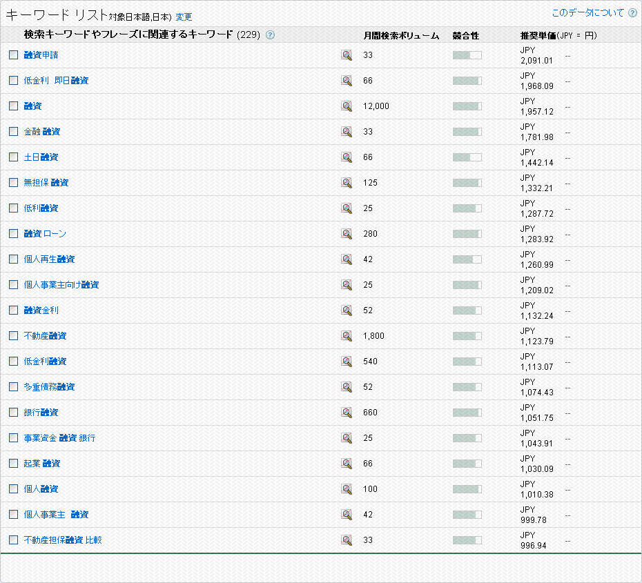 こちらも前述の「融資」キーワードと同様、比較対象を広く多く、という顧客層に相対した結果が、高単価というカタチで表れているのでしょう。