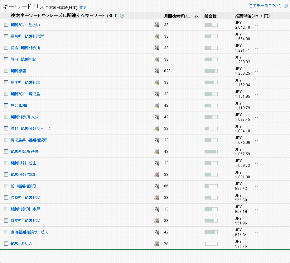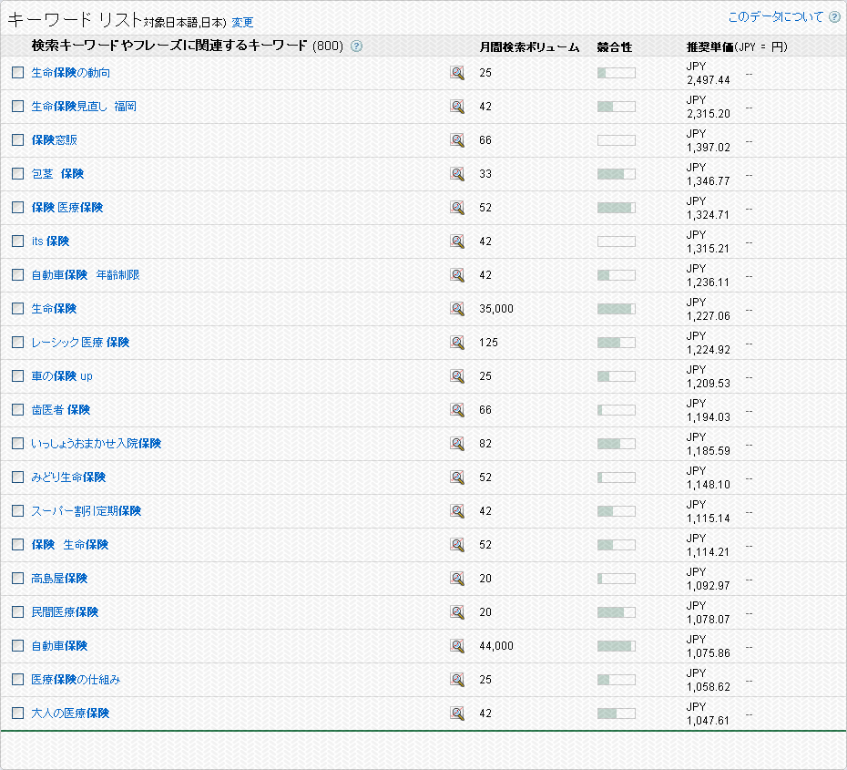 で、同じ1クリックでいただけるなら、より高単価な方が良いじゃないか思い、「1クリックに対する報酬金額の高いキーワード」をワタクシsmknが調べてみたところ、出るわ出るわ、高額キーワードがわんさかと!