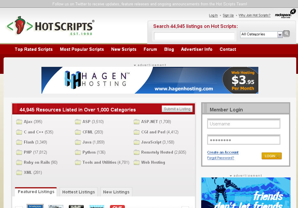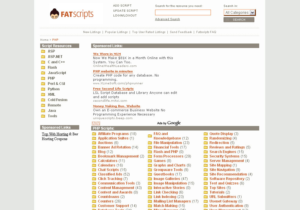 PHPの他にもASP、C(c++)、Perl、Java、Python、Ruby(on Rails)など、おおよその言語が取り扱われており、その数は総計で45000個近くに上ります。