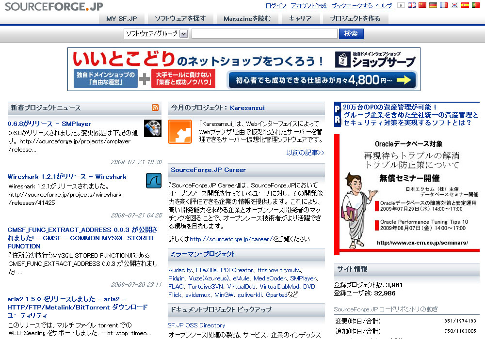 泣く子も黙るオープンソース紹介サイトの雄、代表的なサイトのご本家です。