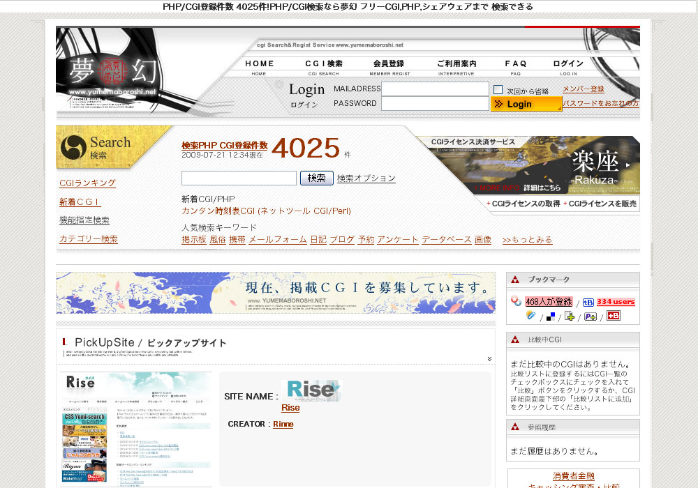 CGI(Perl)とPHPのプログラムが4000個以上掲載されている、国内古参のプログラム紹介系サイトです。