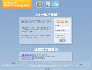 「ブレストフィールド」は、PHP + JavaScript(jQuery)製のブレスト用WEBサービスで、多人数でリアルタイムなブレストが行えるというサービスになります。