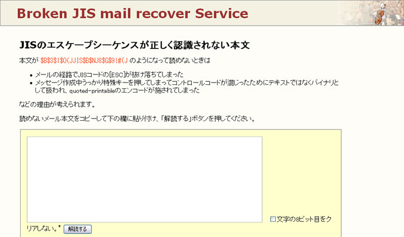 こちらはメールの文字化け解読専門のWebサービスになります。