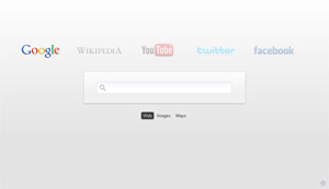 シンプルでスタイリッシュでクールで華麗なデザイン、Google・WIKIPEDIA・YouTube・twitter・そしてfacebook(!?)という超有名5サイトの検索窓が1ページ内で完結する利便性。