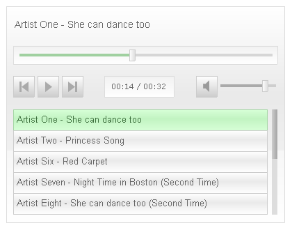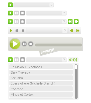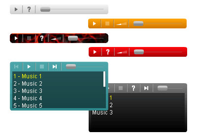 それぞれ特徴があって、オープンソースだったりCCライセンスだったり、再生ボタンだけだったりガッツリデザインだったり、ボリュームバーの有無、曲のタイトル表示の有無、カスタマイズ性、拡張性などなど、ホントに千差万別。