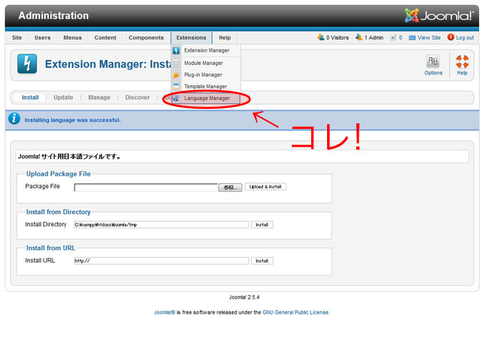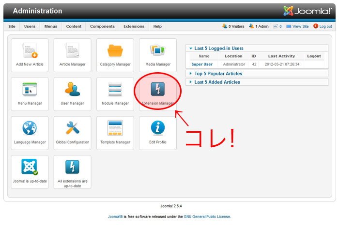 今回はそんなJoomla!の現行最新版、Joomla!2.5.4をサーバにインストールして、日本語化する方法をざっくりご紹介したいと思います。