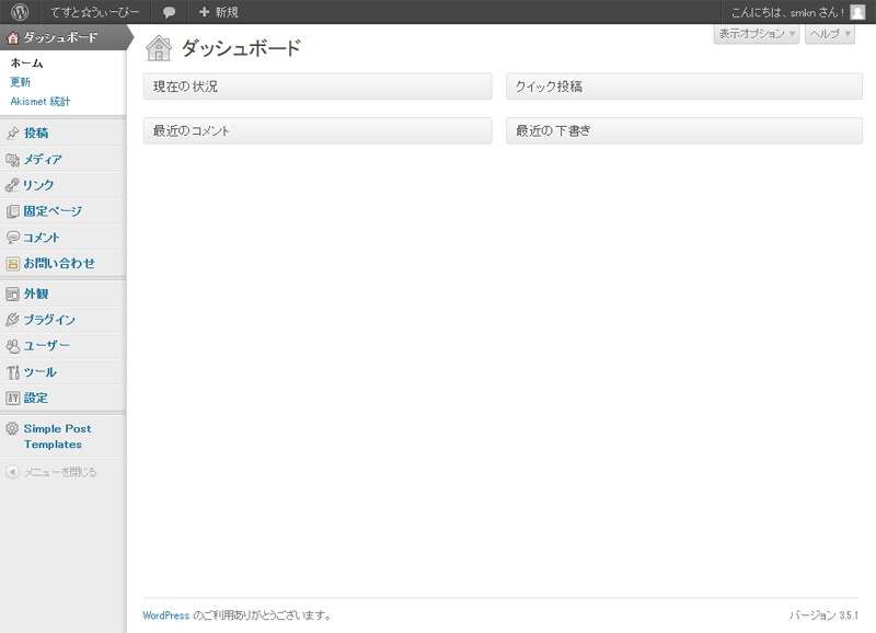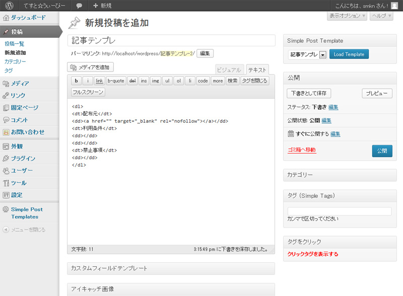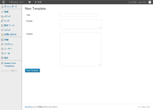「Simple Post Templates」をインストールすると、画面左のナビ部分に「Simple Post Templates」というのが出現します。