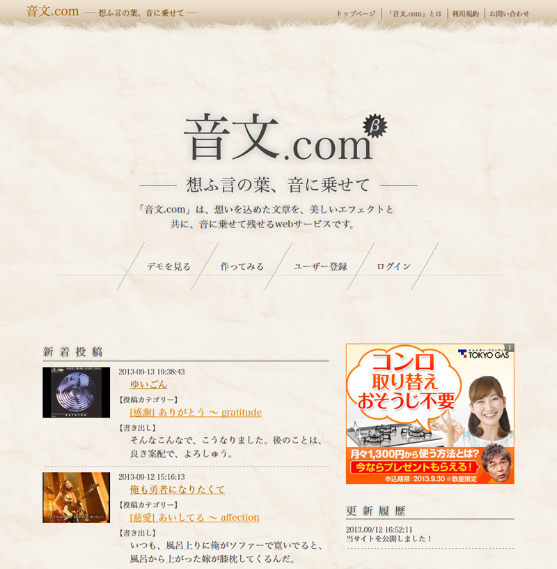 そんなこんなで遂に陽の目を浴びる「音文.com」を、これからどうかよろしくお願いしますっ m(_ _)m