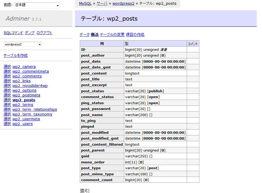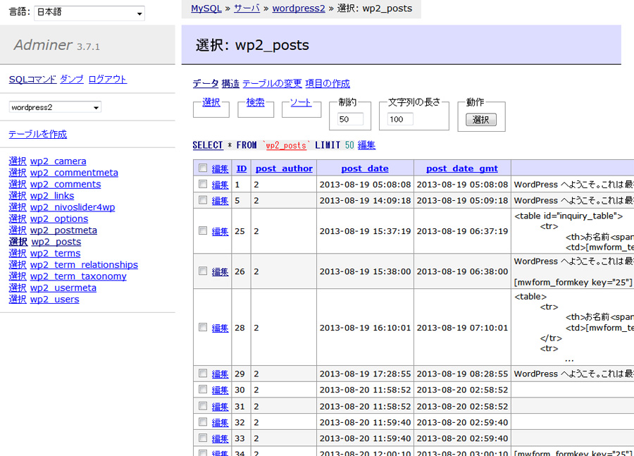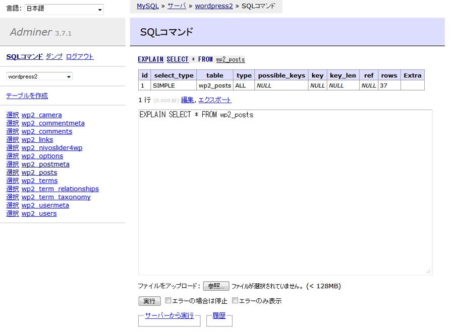 ここでAdminerの早さを実感できるのではないでしょうか。