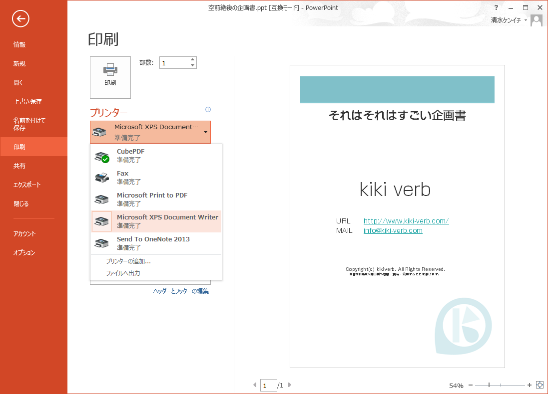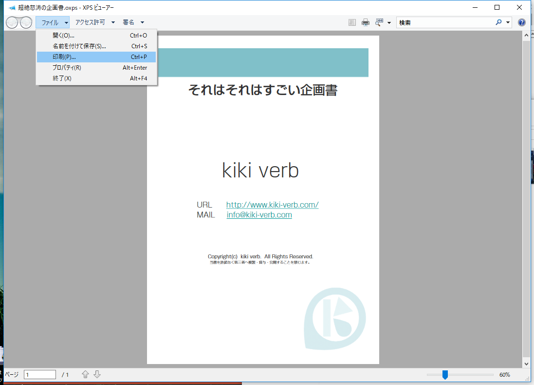 これを選んで印刷すると、デスクトップあたりに .oxps という拡張子のファイルが生成されるかと思いますので、大事にとっておきましょう。